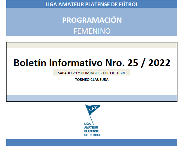 Femenino #Programación T. CLAUSURA #Femenino 8VA FECHA PRIMERA A Y PRIMERA B Leer Mas 25 octubre, 2022