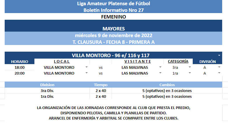 Femenino #Programación T. CLAUSURA #Femenino 8VA FECHA PRIMERA A Y PRIMERA B Leer Mas 25 octubre, 2022