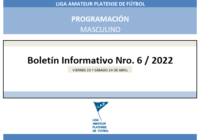 Futbol #Programación T. APERTURA #Masculino 6TA FECHA PRIMERA A, 5TA FECHA PRIMERA B Y 2DA FECHA PRIMERA C Leer Mas 26 abril, 2022