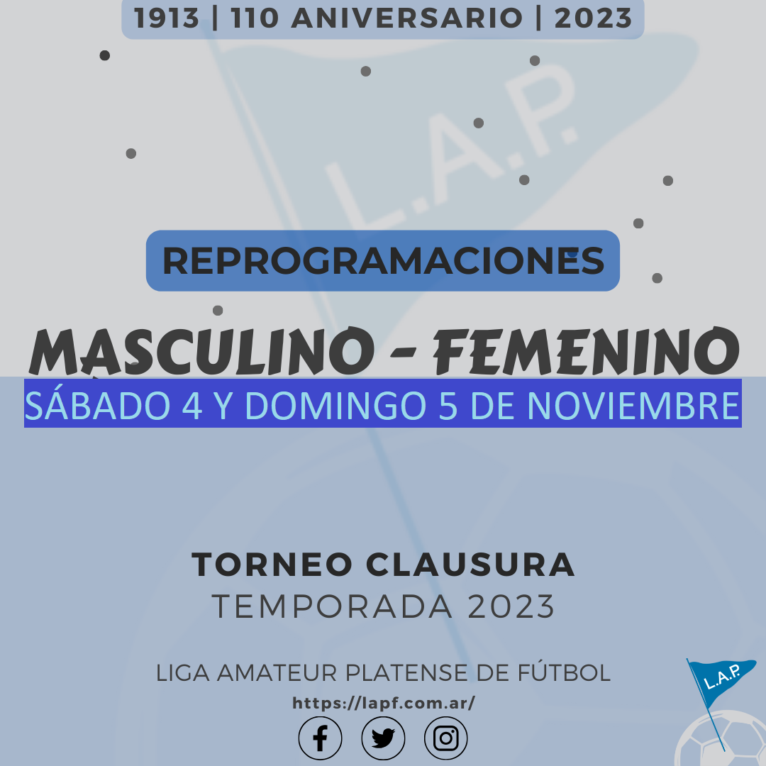 Futbol TORNEO CLAUSURA: PRIMERA A – FECHA 6 | PRIMERA B – FECHA 8 | T. ASCENSO – FECHA 5 #Masculino Leer Mas 23 octubre, 2023