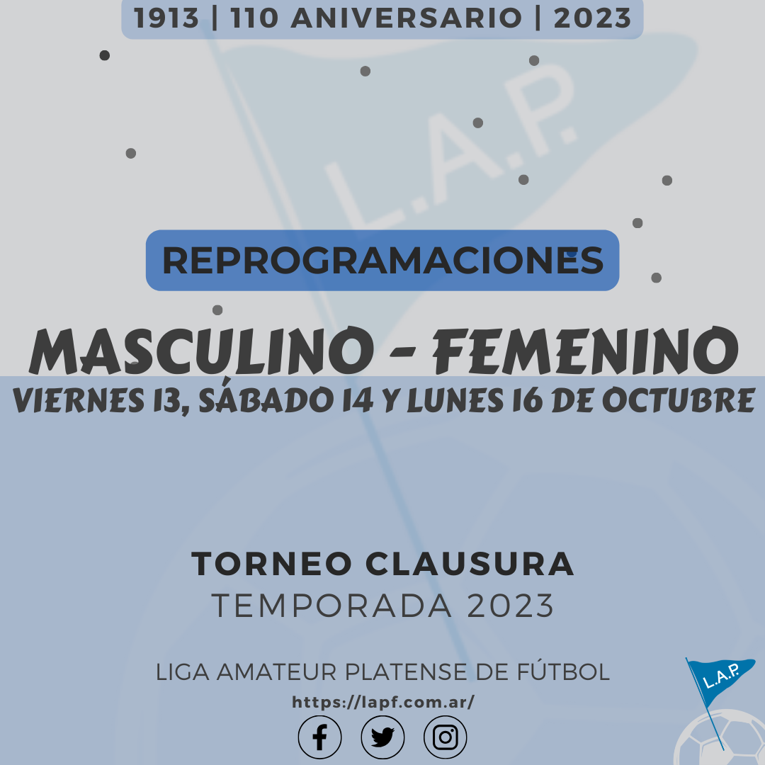 Futbol TORNEO CLAUSURA: PRIMERA A – FECHA 5 | PRIMERA B – FECHA 7 | T. ASCENSO – FECHA 4 #Masculino Leer Mas 18 octubre, 2023