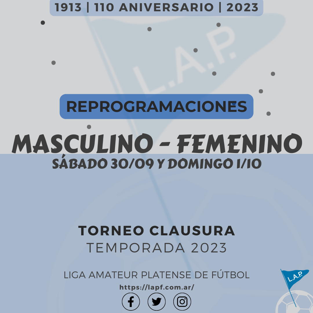 Futbol TORNEO CLAUSURA: PRIMERA A – FECHA 2 | PRIMERA B – FECHA 4 | T. ASCENSO – FECHA 1 #Masculino Leer Mas 25 septiembre, 2023