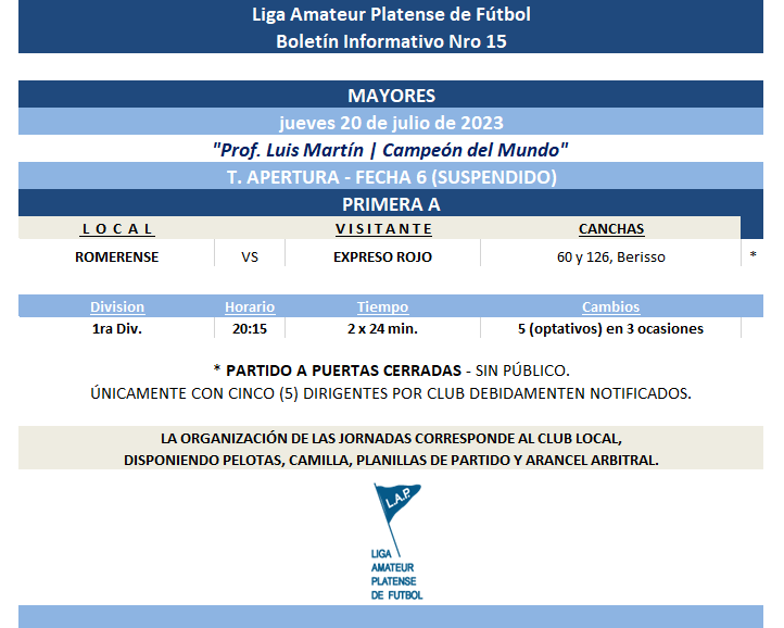 Futbol TORNEO APERTURA: PRIMERA A – FECHA 15 | PRIMERA B – FECHA 13 | T. ASCENSO – FECHA 12 #Masculino Leer Mas 24 julio, 2023