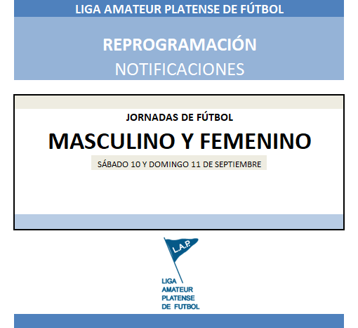 Femenino #ReProgramación NOTIFICACIONES SÁBADO 10 Y DOMINGO 11 DE SEPTIEMBRE Leer Mas 8 septiembre, 2022