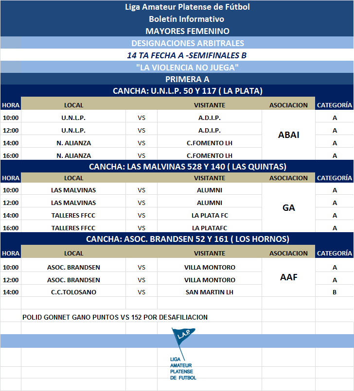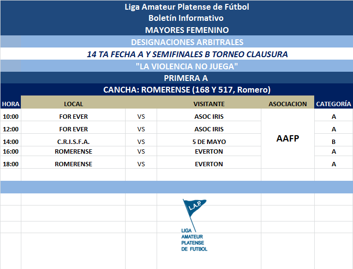 Compartimos las designaciones arbitrales para los partidos de la FECHA 16 de la PRIMERA A, FECHA 15 de la PRIMERA B Clausura Masculino y de las Semifinales PRIMERA B y FECHA 14 de la PRIMERA A Torneo Clausura Femenino 2024.