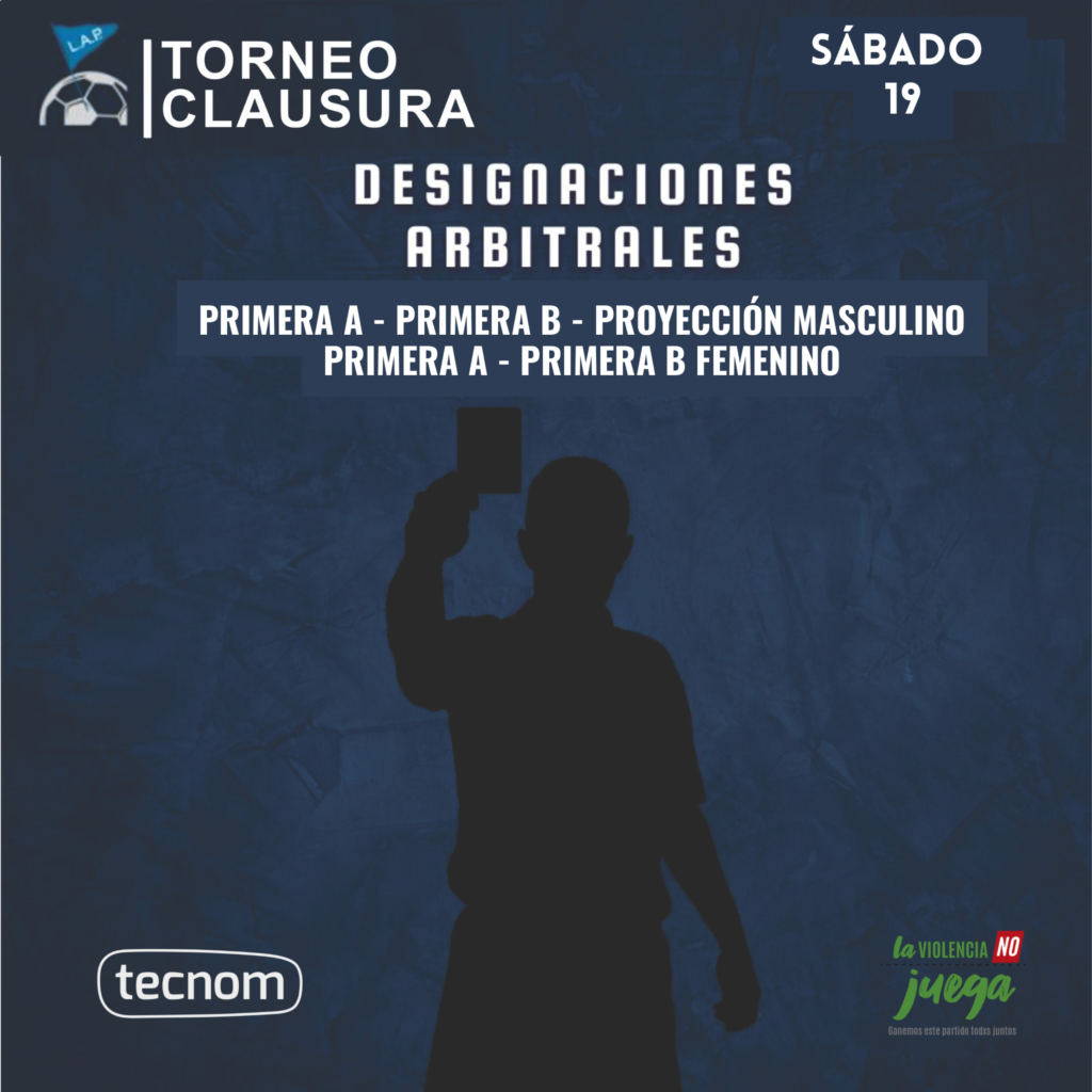 Compartimos las designaciones arbitrales para los partidos de la FECHA 8 de la PRIMERA A, FECHA 7 de la PRIMERA B Y FECHA 6 del Torneo Proyección Clausura Masculino y de la FECHA 8 de la PRIMERA B y FECHA 7 de la PRIMERA A Torneo Clausura Femenino 2024.