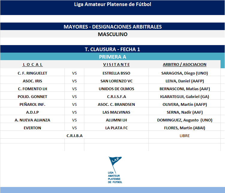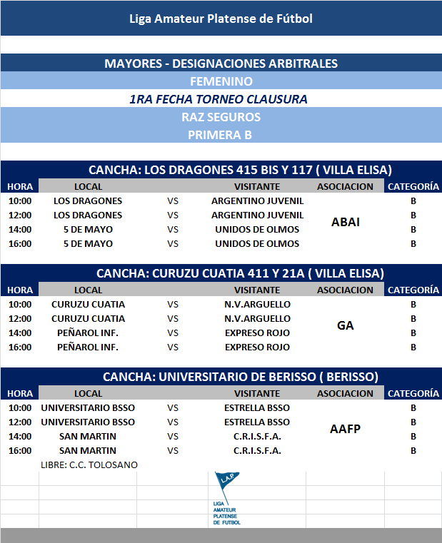 Compartimos las designaciones arbitrales para los partidos de la FECHA 1 de la PRIMERA A Torneo Clausura “RAZ Seguros” Masculino y de la PRIMERA B Torneo Clausura “RAZ Seguros” Femenino 2024.