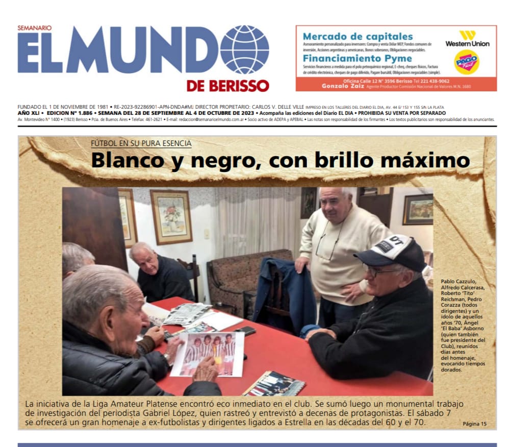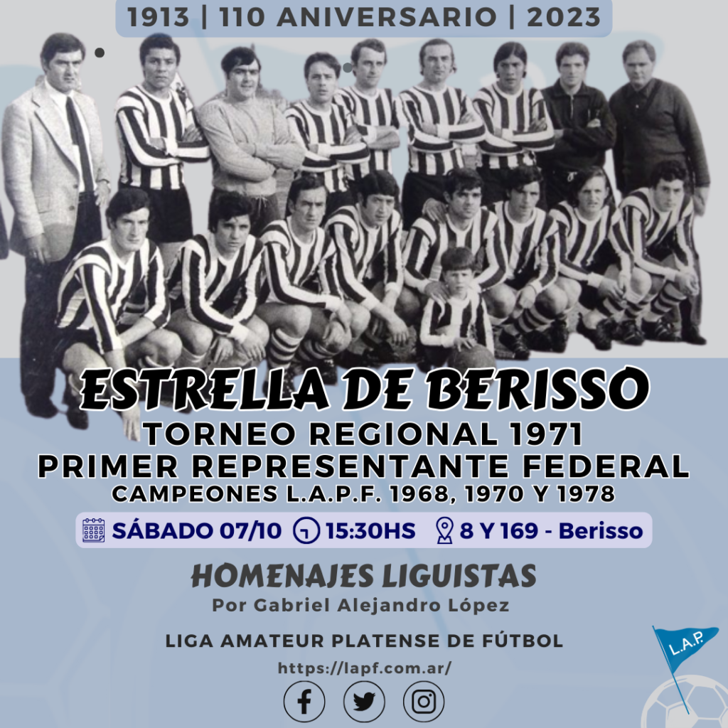 Los medios de la ciudad de Berisso hicieron eco del reconocimiento que la Liga Amateur Platense de Fútbol prepara para los históricos campeones del Club Atlético Estrella de Berisso entre 1968 y 1978, dónde se destaca la primera representación de un equipo liguista en el Torneo Regional 1971.