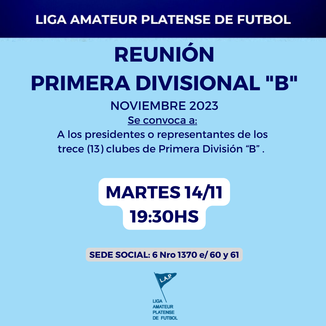 Así también, se expresa la convocatoria a reunión de los clubes de la Primera Divisional “B” para el próximo MARTES 14 DE NOVIEMBRE desde las 19:30hs en la misma sede social.