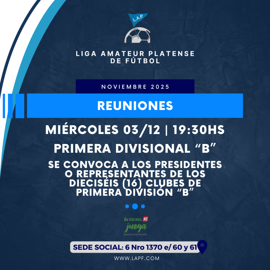 Así también, se expresa la convocatoria a reunión de los clubes de la Primera Divisional “B” para el próximo MIÉRCOLES 04 DE NOVIEMBRE desde las 19:30hs en la misma sede social.