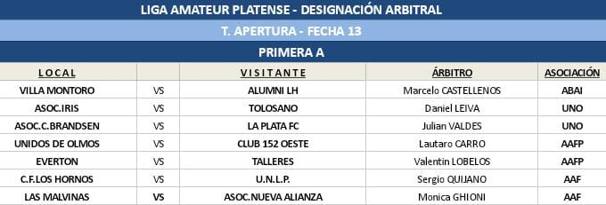13RA FECHA – PRIMERA A Mayores