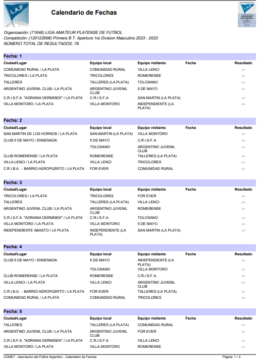 Compartimos el fixture del Torneo Apertura 2023 de la Primera Divisional “B” para categorías infantiles y divisiones juveniles y mayores.