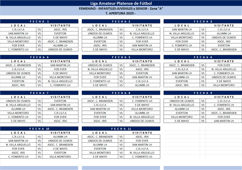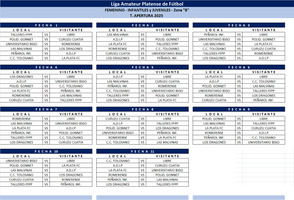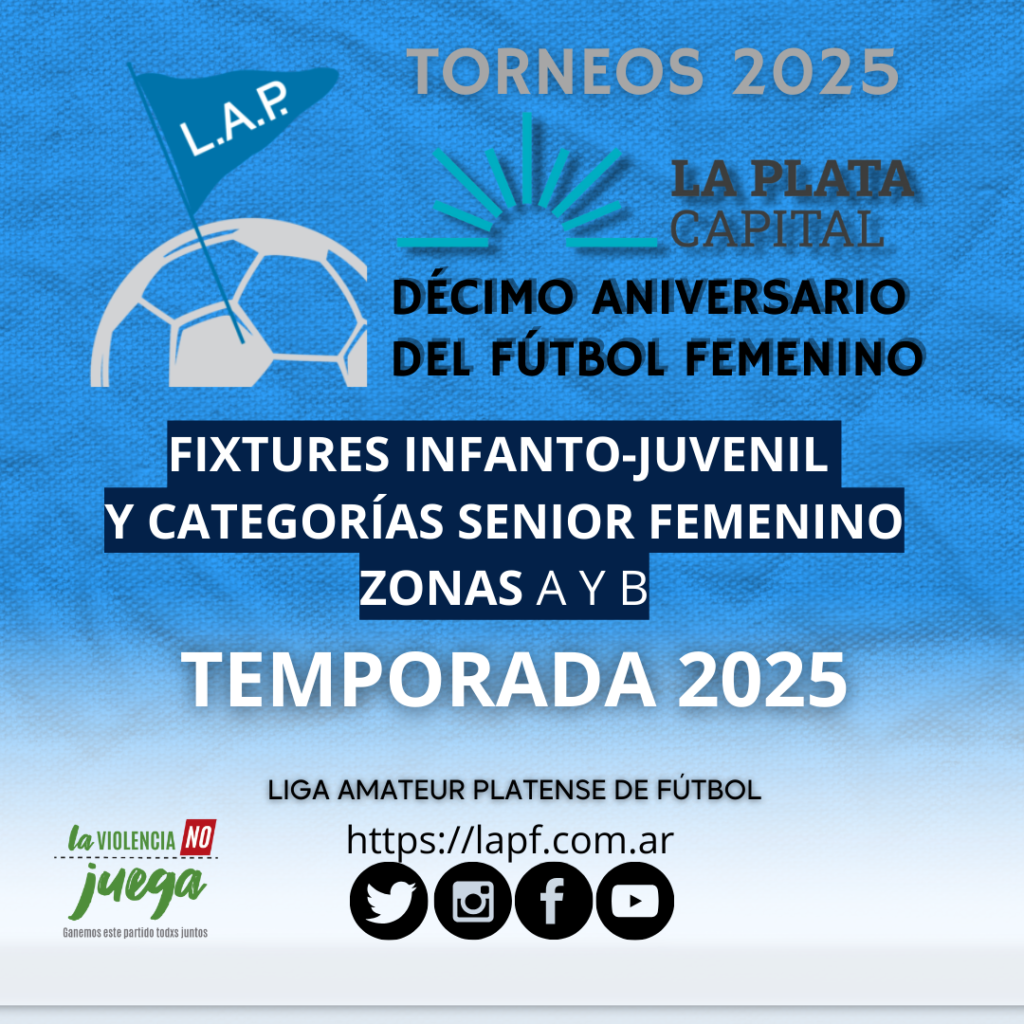 Les comunicamos los fixtures correspondientes a las zonas A y B torneos 2025: La Plata Capital y décimo aniversario del fútbol femenino.