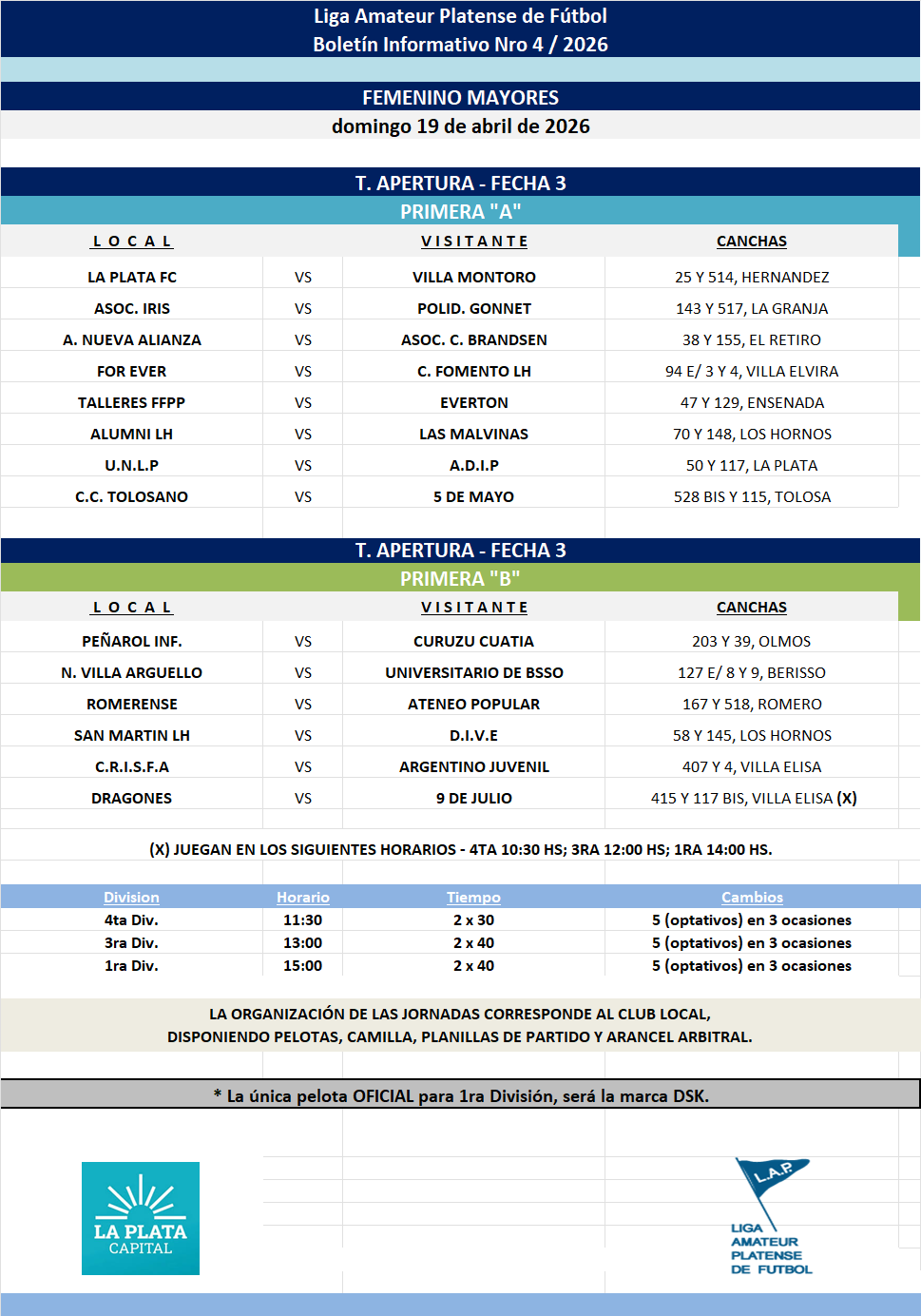#Femenino T. APERTURA LA PLATA CAPITAL | PRIMERA A Y PRIMERA B - FECHA 3 MAYORES