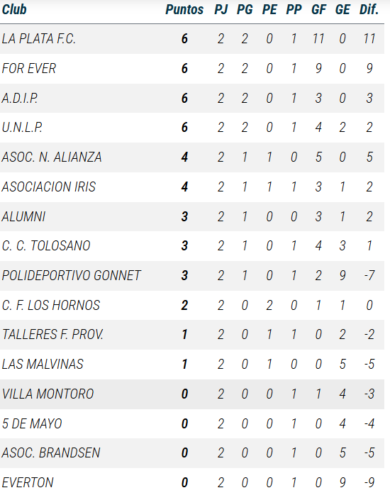 La Liga Amateur Platense de fútbol notifica las tablas de las categorías mayores de la Primera a y de la Primera B y se comunica a la comunidad Liguista que se está trabajando para regularizar la carga de resultados y tablas de posiciones para la próxima semana.