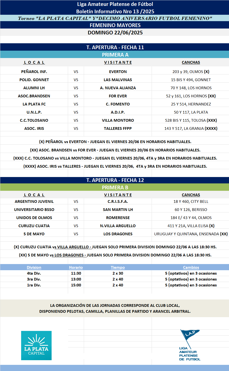 #Femenino T.APERTURA 2025 – Primera A Fecha 11 ┃ Primera B Fecha 12 – MAYORES