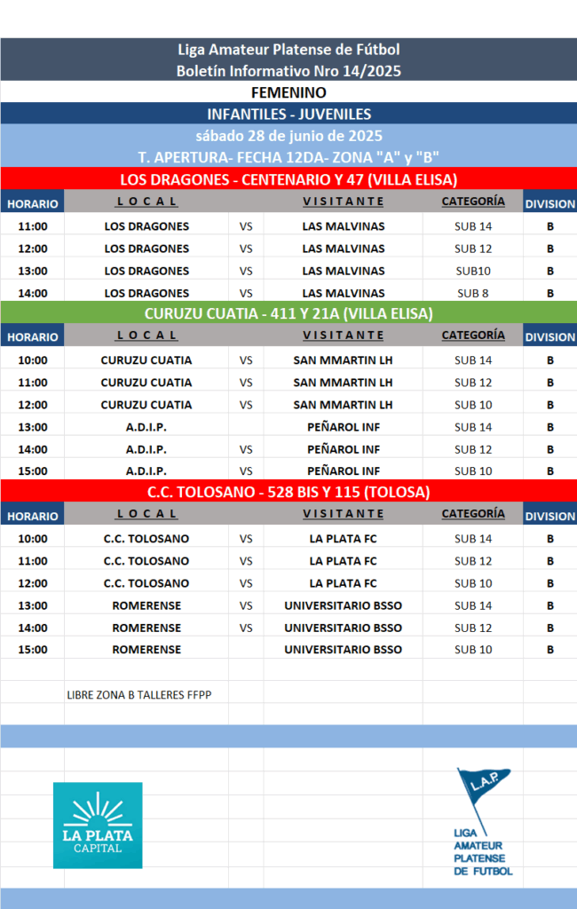 Les comunicamos el boletín informativo con la programación N°14 a disputarse el próximo fin de semana según el siguiente cronograma: