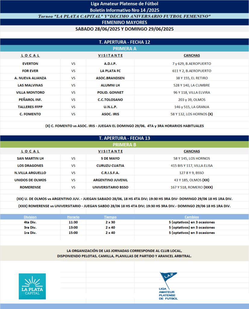 #Femenino T.APERTURA 2025 – Primera A Fecha 11 ┃ Primera B Fecha 13 – MAYORES