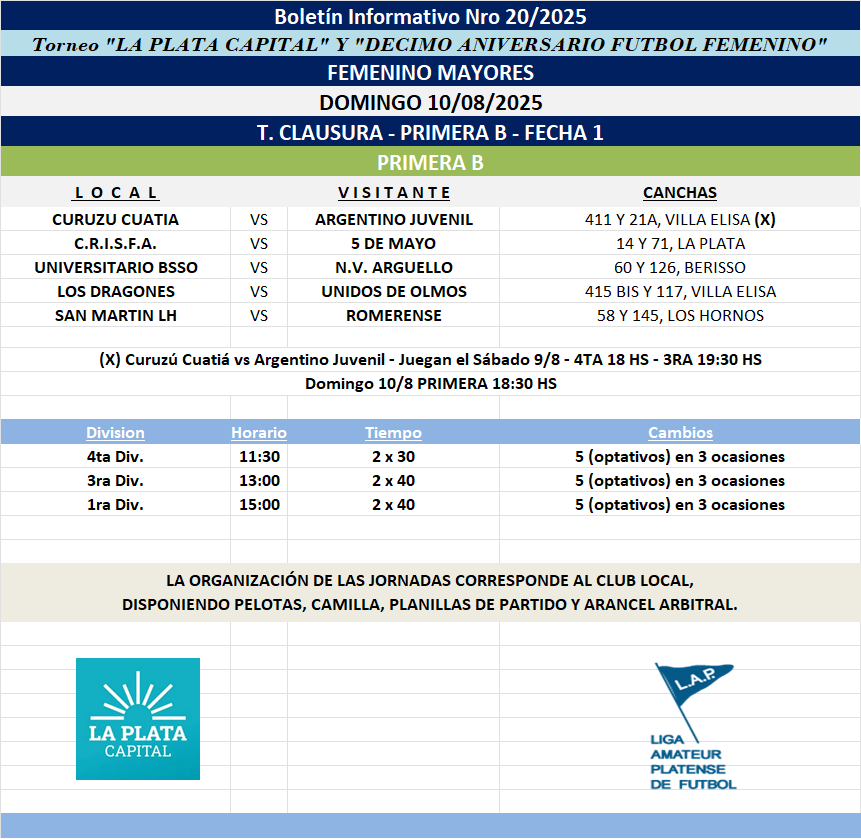 #Femenino T.CLAUSURA 2025 – Primera B Fecha 1 – MAYORES