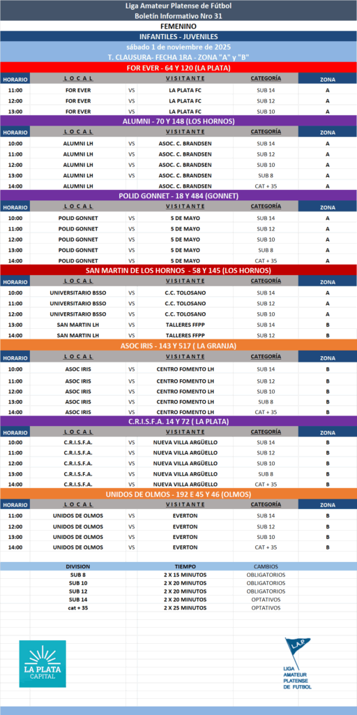 #Femenino T.CLAUSURA 2025 – Zona A, B y C – Fecha 1 INFANTOJUVENILES
