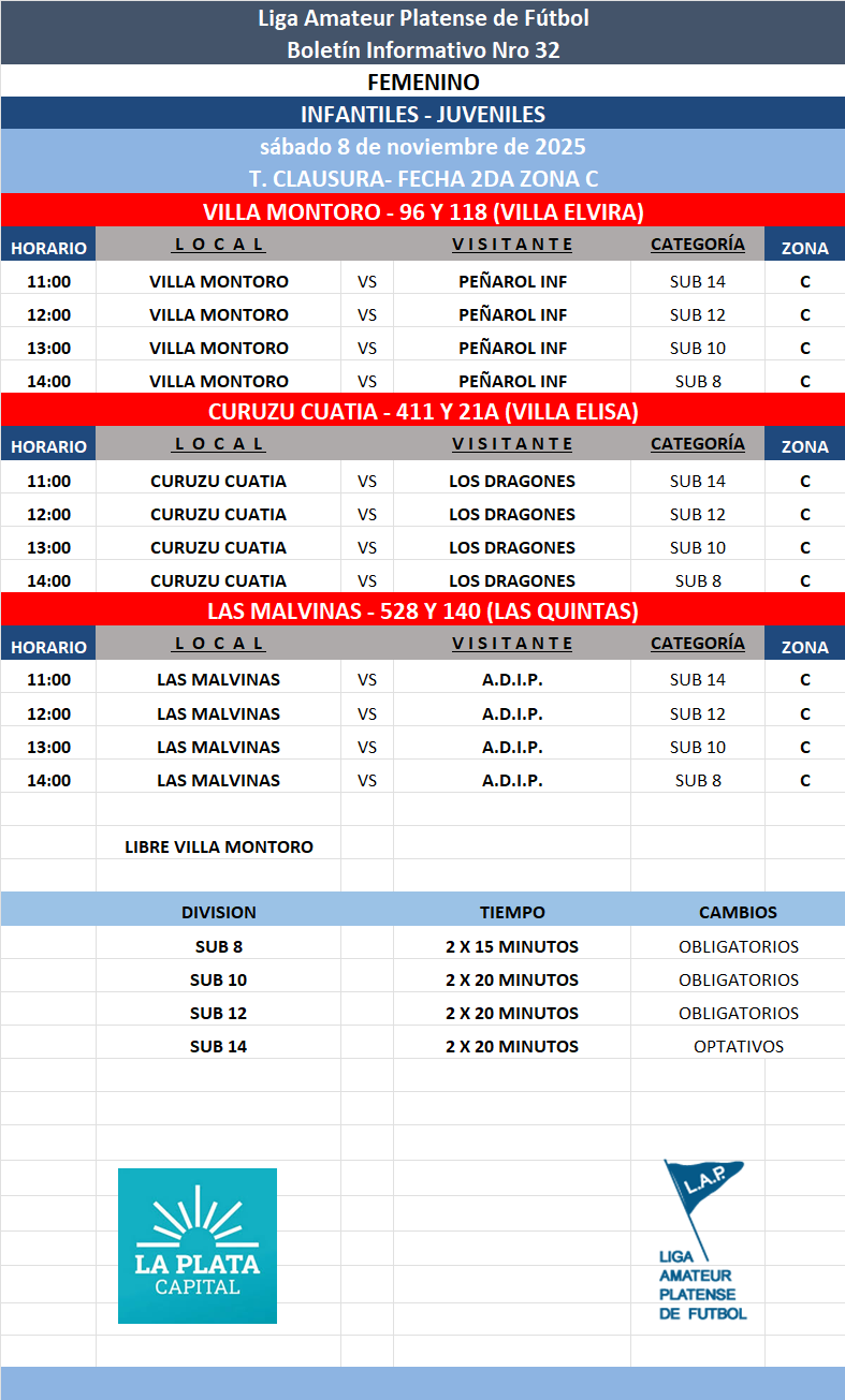 Les comunicamos el boletín informativo con la programación N°32 a disputarse el próximo fin de semana según el siguiente cronograma: