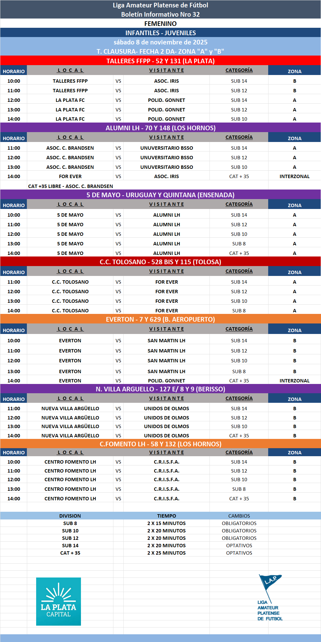 #Femenino T.CLAUSURA 2025 – Zona A, B y C – Fecha 2 INFANTOJUVENILES