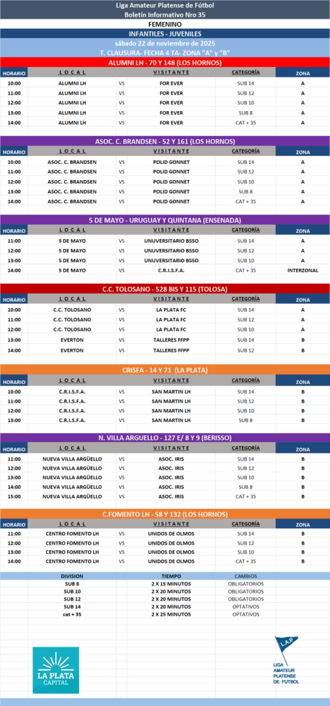 #Femenino T.CLAUSURA 2025 – Zona A, B y C – Fecha 4 INFANTOJUVENILES