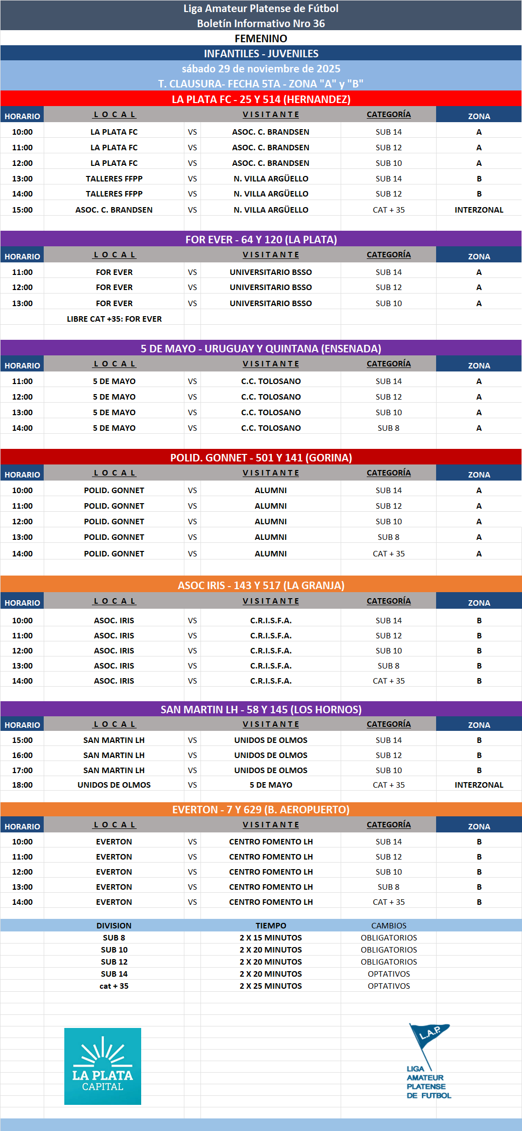 PROGRAMACIÓN NRO 36 – 2025: T. CLAUSURA 2025