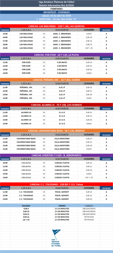 #Femenino T. APERTURA LA PLATA CAPITAL | ZONAS A Y B – FECHA 3 INFANTOJUVENILES