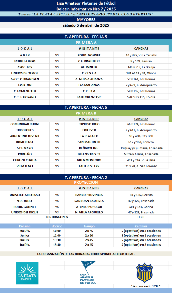PROGRAMACIÓN NRO 7 – 2025: T. APERTURA LA PLATA CAPITAL – ANIVERSARIO 120 CLUB EVERTON