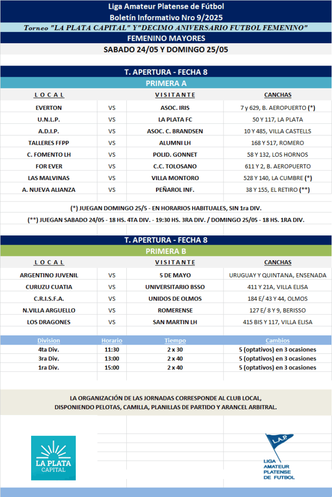 #Femenino T.APERTURA 2025 – Primera A ┃ Primera B Fecha 8 – MAYORES