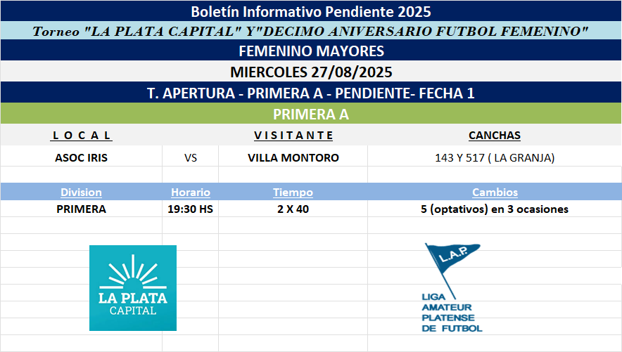 PROGRAMACIÓN PARTIDO PENDIENTE 2025: T. CLAUSURA 2025