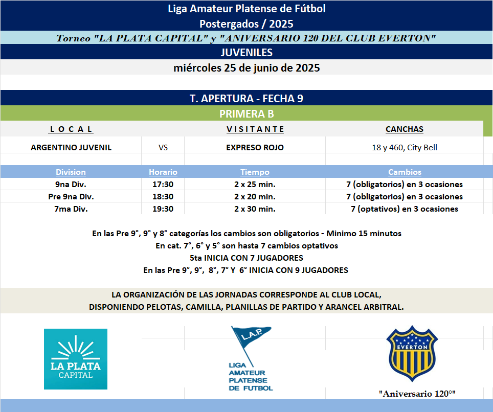 PROGRAMACIÓN POSTERGADOS – 2025: T. APERTURA LA PLATA CAPITAL