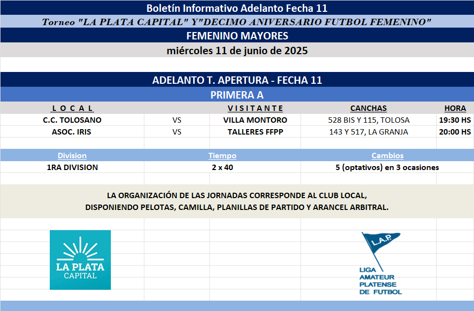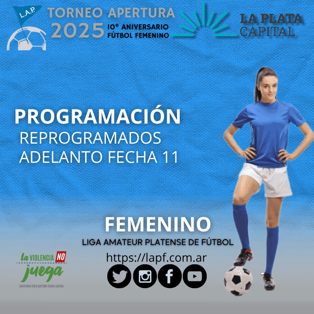 PROGRAMACIÓN REPROGRAMADOS Y ADELANTO FECHA 11 – 2025: T. APERTURA LA PLATA CAPITAL – DÉCIMO ANIVERSARIO FÚTBOL FEMENINO