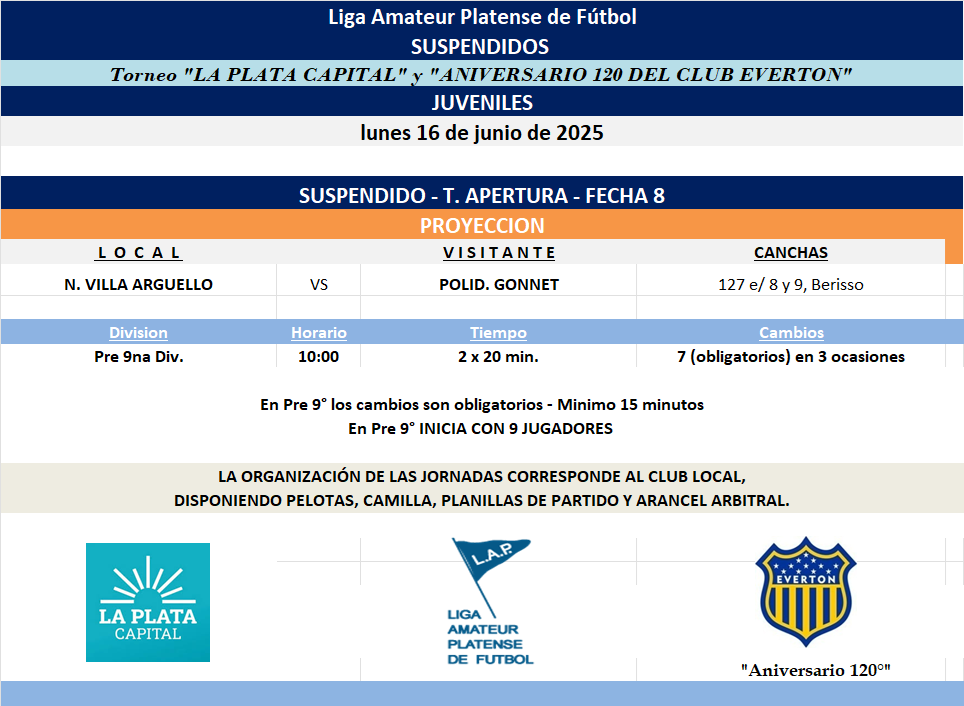 PROGRAMACIÓN SUSPENDIDO – 2025: T. APERTURA LA PLATA CAPITAL – ANIVERSARIO 120 CLUB EVERTON