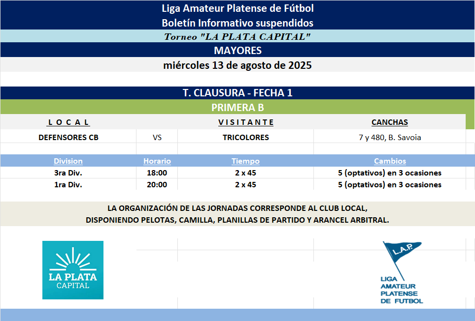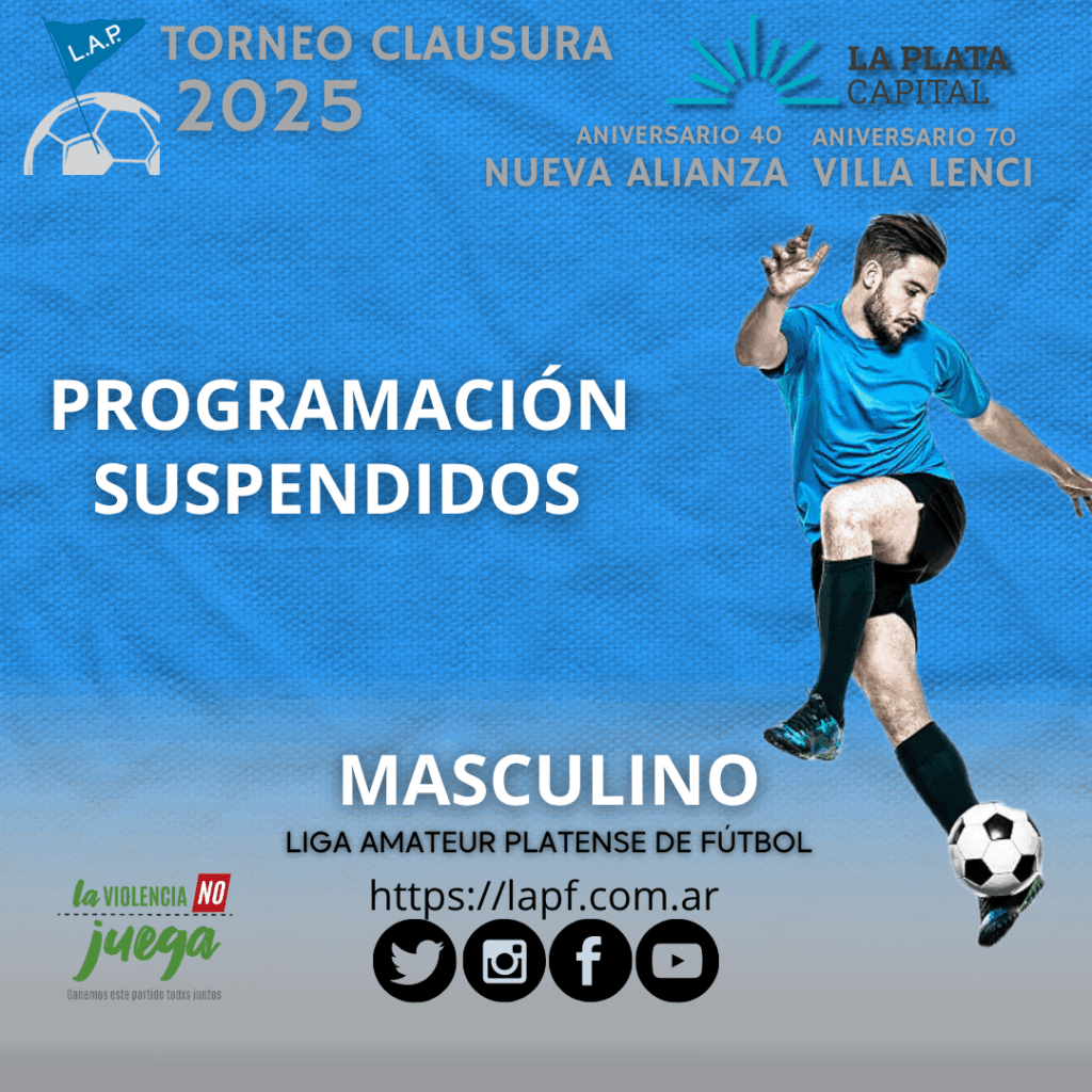 PROGRAMACIÓN SUSPENDIDOS – 2025: T. CLAUSURA LA PLATA CAPITAL – ANIVERSARIO 70 VILLA LENCI – ANIVERSARIO 40 NUEVA ALIANZA