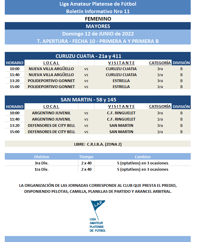 #Programación T. APERTURA 10MA FECHA #Femenino