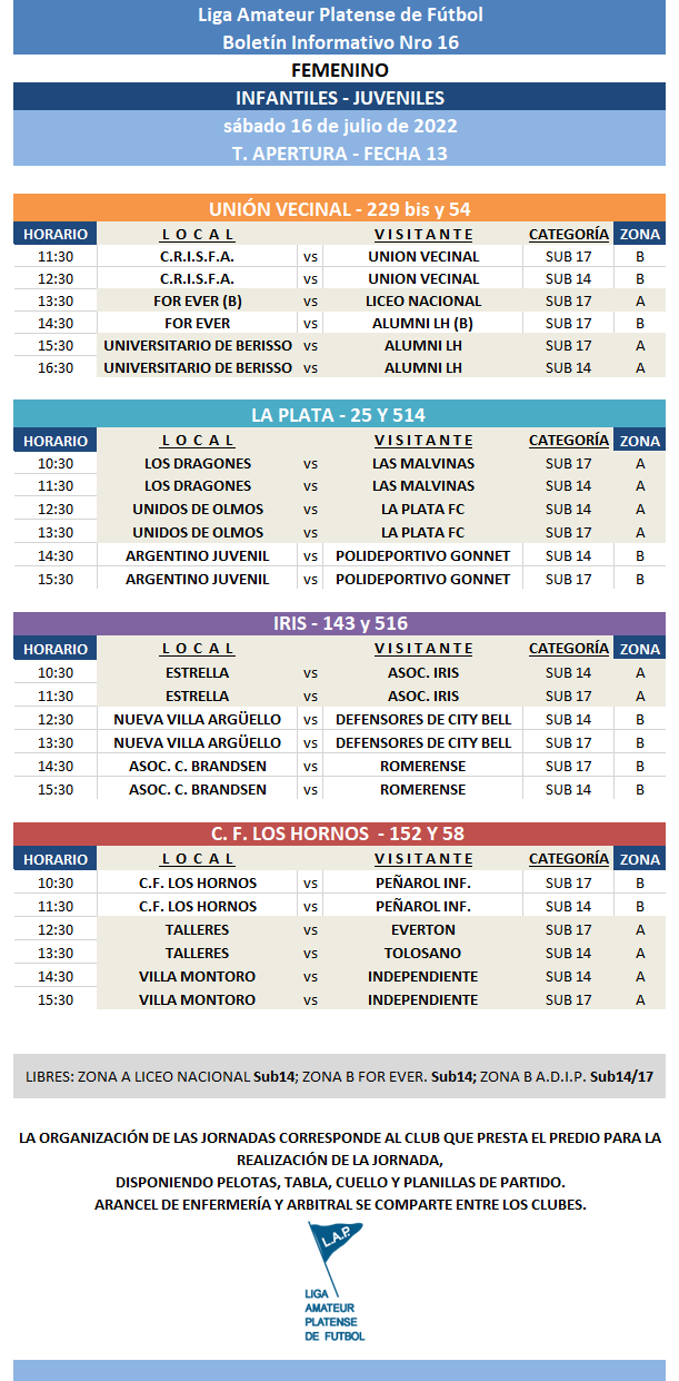 #Programación T. APERTURA 13RA FECHA JUVENILES