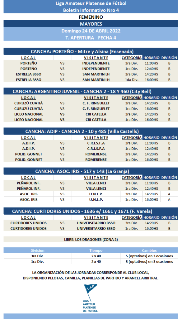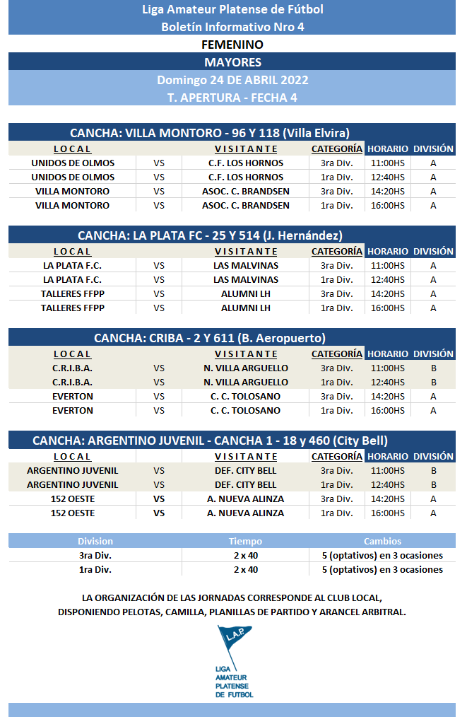 4TA FECHA – PRIMERA A Y PRIMERA B Mayores
