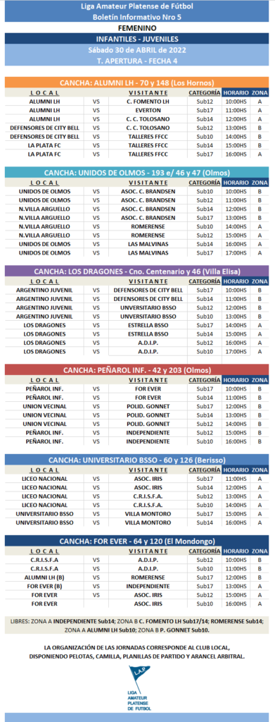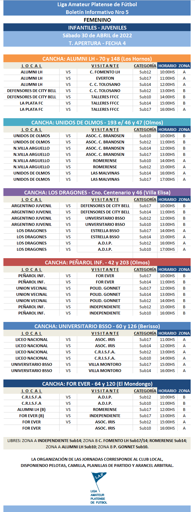 #Programación T. APERTURA 4TA FECHA #Femenino #Juveniles #Infantiles