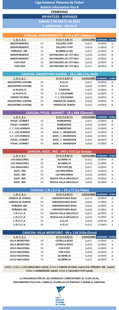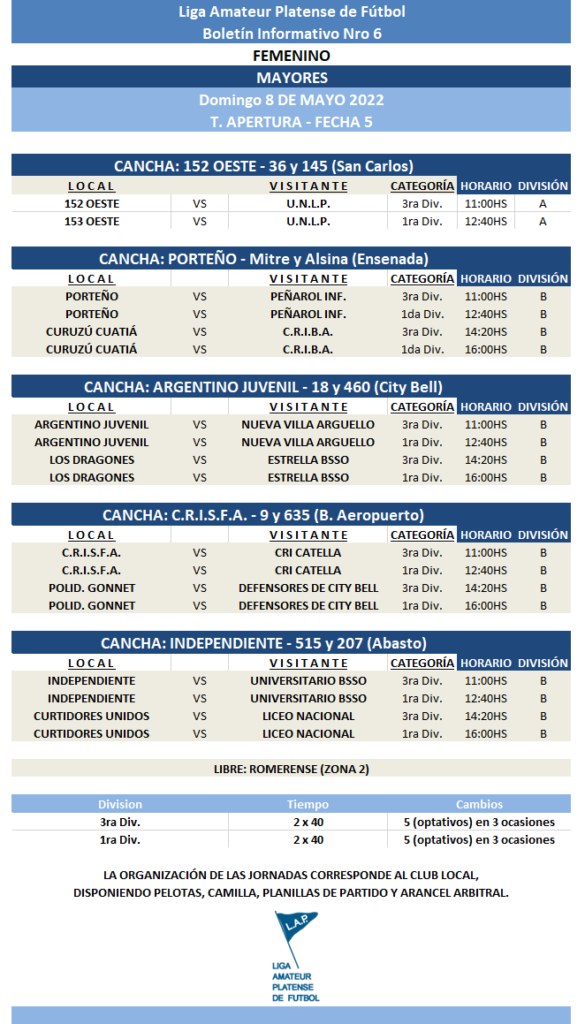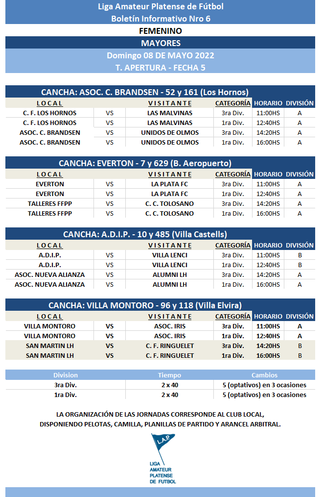 5TA FECHA – PRIMERA A Y PRIMERA B Mayores