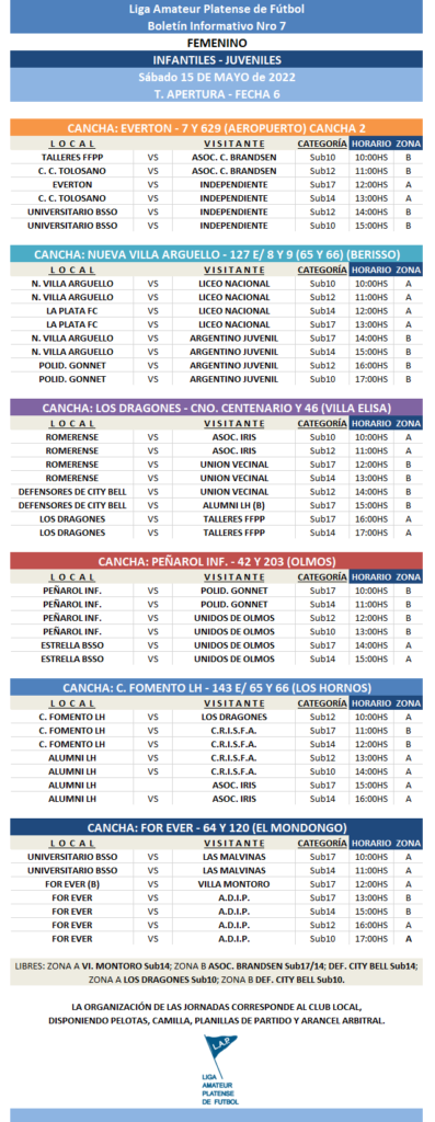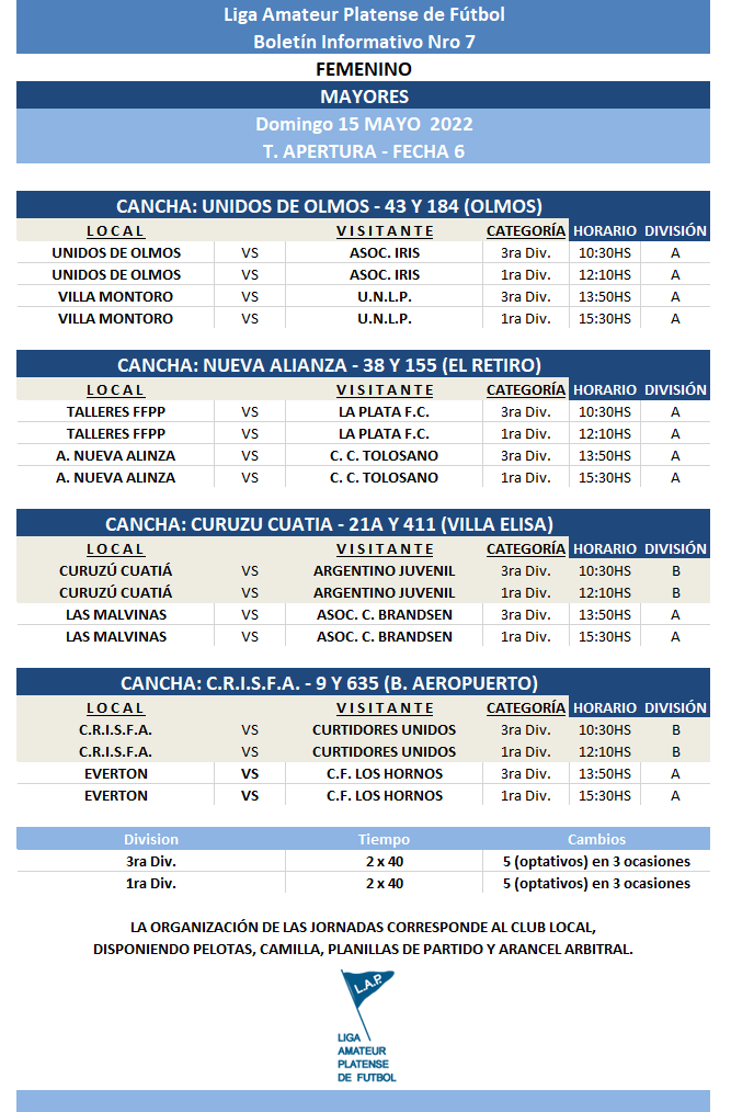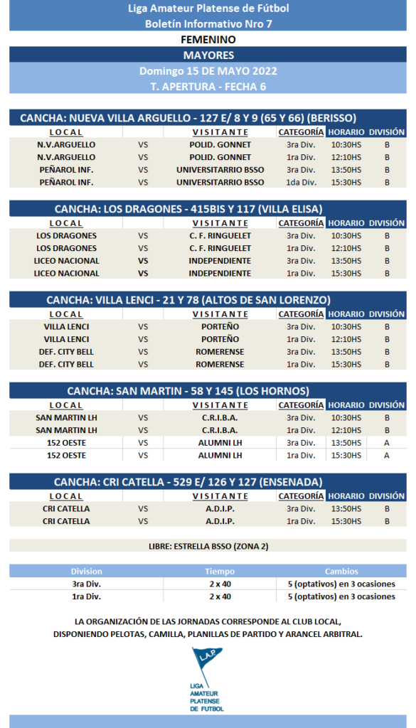 6TA FECHA – PRIMERA A Y PRIMERA B Mayores