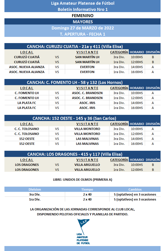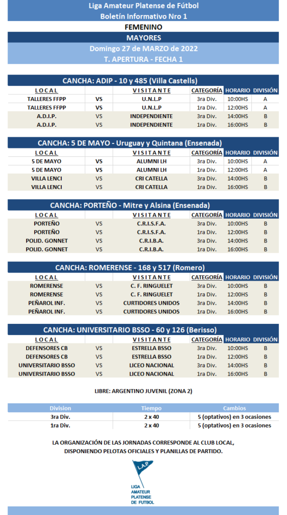 #Programación T. APERTURA #Femenino 1RA FECHA – PRIMERA A Y PRIMERA B