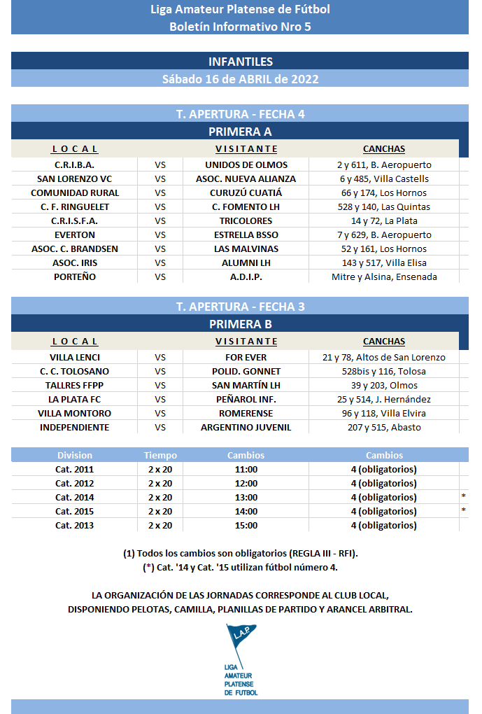 3RA FECHA – PRIMERA B Mayores – Infantiles