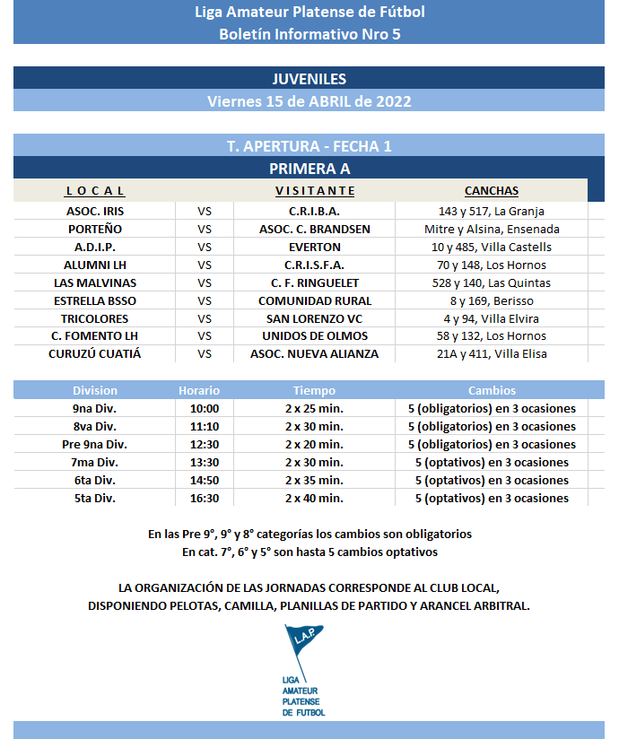 Compartimos la programación prevista para los partidos correspondientes al T. Apertura de Primera Divisional “A” y Primera Divisional “B” de Mayores e Infantiles #Masculino a disputarse el próximo fin de semana.