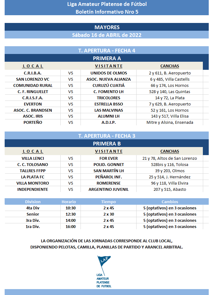 4RA FECHA – PRIMERA A Mayores – Infantiles