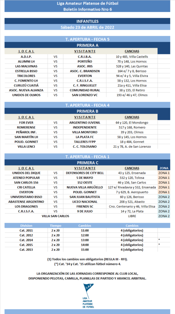 1RA FECHA – PRIMERA C Mayores – Infantiles – Juveniles