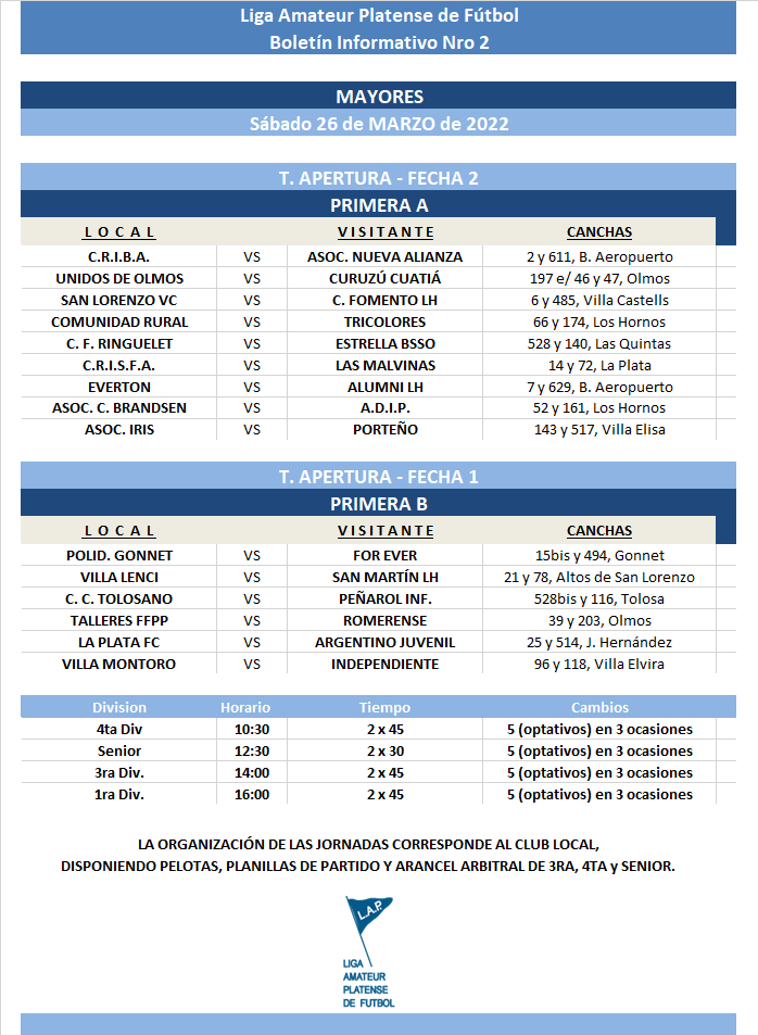 #Programación T. APERTURA #Masculino 2DA FECHA PRIMERA A Y 1RA FECHA PRIMERA B