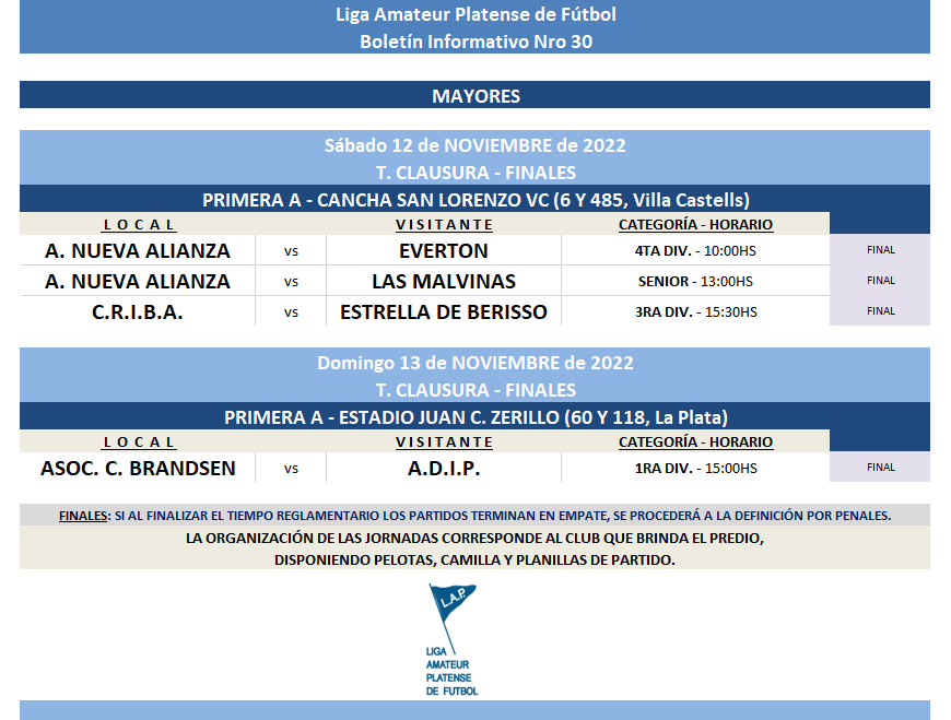 Dom 13/11 Primera A – T. Clausura FINAL 1RA DIV. MAYORES