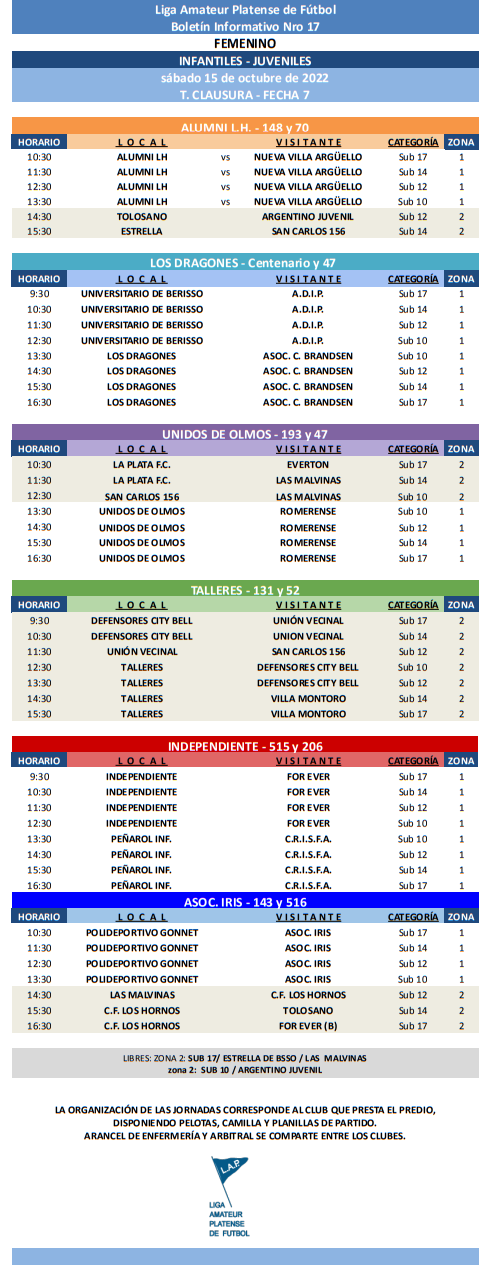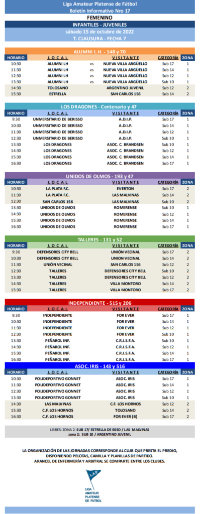 El club ARGENTINO JUVENIL notificó que no presentará categoría Sub12 vs C. C. TOLOSANO por la 7MA FECHA del T. Clausura de #Infantiles a disputarse el sábado 15/10.